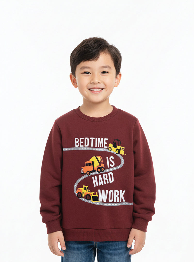 Bedtime is Hard Work Graphics Sweatshirt For Boys – Relatable humor wrapped in comfort. Soft fleece construction with witty design that resonates with kids and parents alike.