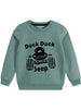 Duck Duck Jeep Adventure Sweatshirt For Boys – Adventurous duck and jeep graphics spark imagination and outdoor fun. Soft, durable fabric keeps boys comfortable during play and everyday wear.