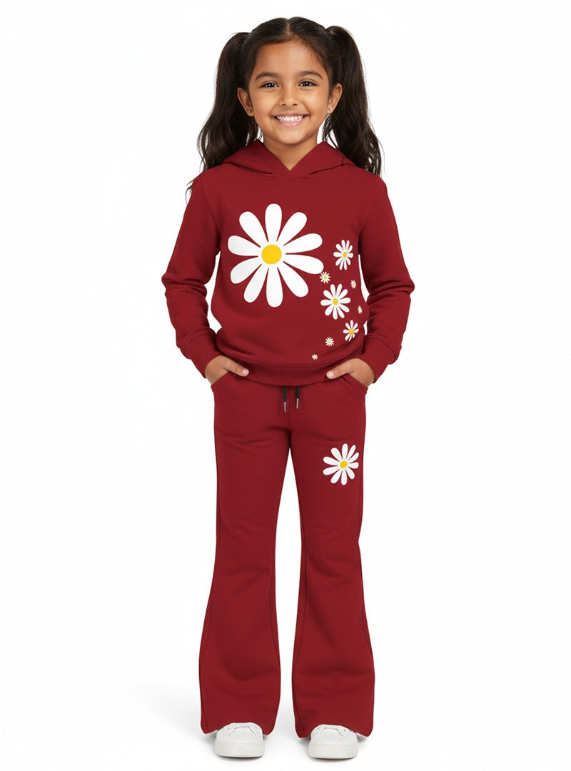The hoodie comes with a relaxed fit and a warm hood, while the trousers offer a trendy bell-bottom silhouette that kids love. The floral print adds a playful touch without being overdone, keeping the look cute and modern.