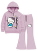 Adorable pink Hello Kitty set for girls featuring cute Hello Kitty character with daisy flowers. Includes soft fleece hoodie with hood, drawstrings, and front pocket, plus matching flare pants with Hello Kitty graphic. Warm and comfortable material perfect for winter. Your little Hello Kitty fan will love this sweet and stylish outfit! Perfect for casual wear or playtime.Β