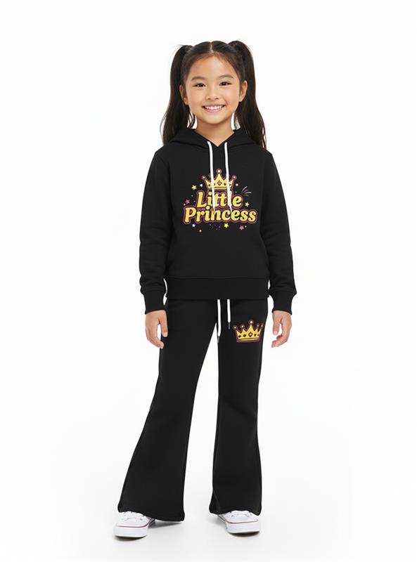 Cozy hoodie paired with flared trousers creates the ultimate comfort set for girls. Premium fabrics and playful design make this two-piece essential perfect for layering through seasons.