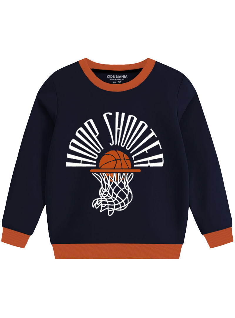 This Navy "Hoop Shooter" sweatshirt boasts a unique winter shirt design. Made with Fleece quality materials, it provides warmth and style in one practical package.
