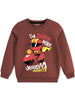 Action-packed brown superhero sweatshirt for boys featuring 'I'm Super Hero Vrooom' design with motorcycle. Soft fleece winter pullover perfect for young heroes.Β