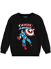 Unleash your inner hero with this awesome Captain America kids' fleece sweatshirt! Features the iconic Marvel hero and his shield on a classic black background. Perfect for superhero fans and chilly day